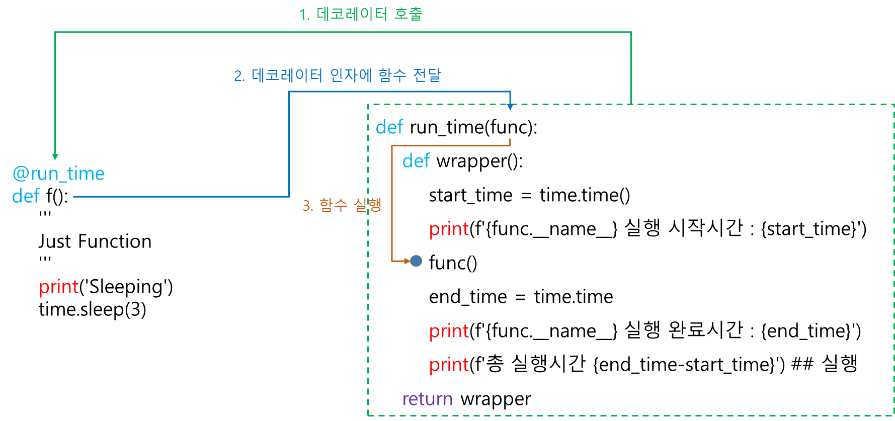print(f'{func.__name__} 실행 완료시간 : {end_time}') ## 함수 이름, 종료 시간 출력
