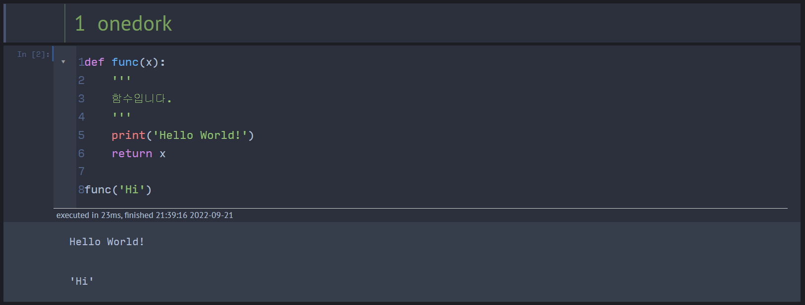 아래 그림은 배경 테마를 onedork 만 설정한 경우와 위 코드로 설정한 경우의 차이를 나타낸 것이다.
