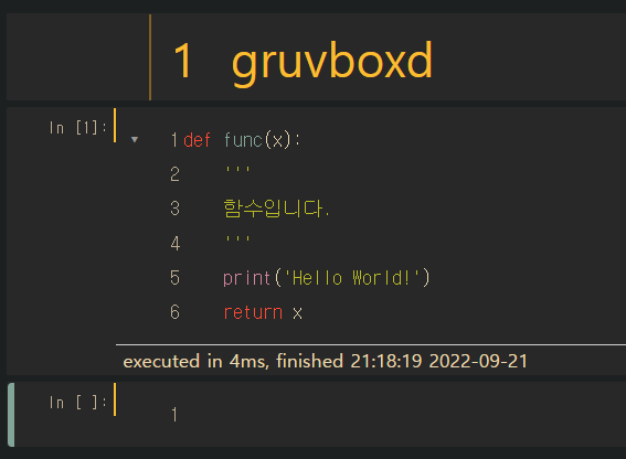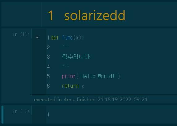 아래 그림들은 배경 테마별 주피터 노트북 환경을 나타낸 것이다. 이를 참고하여 원하는 배경을 선택하면 된다.
