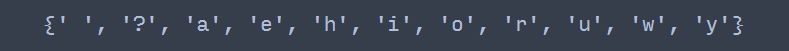 set은 문자나 배열을 받을 수 있다. 만약 문자열을 받는다면 해당 문자열에 있는 유니크한 글자를 담게 된다.