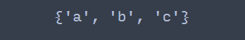 셋을 생성할때에는 중괄호({ }) 안에 원소를 콤마로 구분하여 넣어주는 식으로 생성한다.