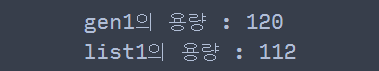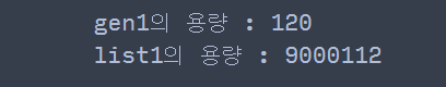 print('gen1의 용량 :', sys.getsizeof(gen1))
