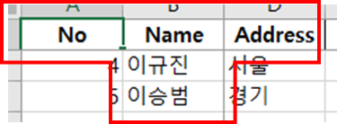 해당 엑셀파일을 열어보면 위 그림과 같이 행과 열이 고정되어 있는 것을 볼 수 있어요.