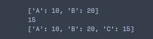 ## 'C'라는 키가 없으므로 새로운 키 'C'가 생성되고 값은 15로 설정되어 이를 반환