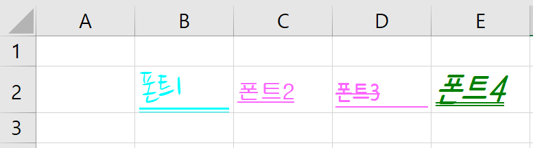 single이 포함되어 있으면 밑줄은 한 개 이고 double이면 이중 밑줄이다. 또한 Accounting이 포함되어 있다면 밑줄을 셀 가로 사이즈에 맞게 그린다는 것이며 Accounting 없다면 글자 수에 맞게 밑줄이 그어지는 것이다.