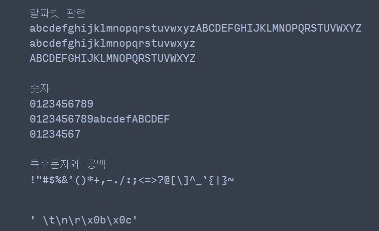(내가 생각하는) string 모듈은 특정 분류에 따른 문자 집합을 제공하는 모듈이다.