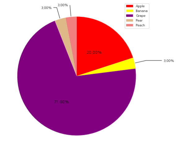 위에서 보시는 바와 같이 Banan, Pear, Peach에 대응하는 비율이 작을 때(여기서는 3%) 파이 차트를 그리게 되면 텍스트가 겹치게 되는 문제가 발생합니다.