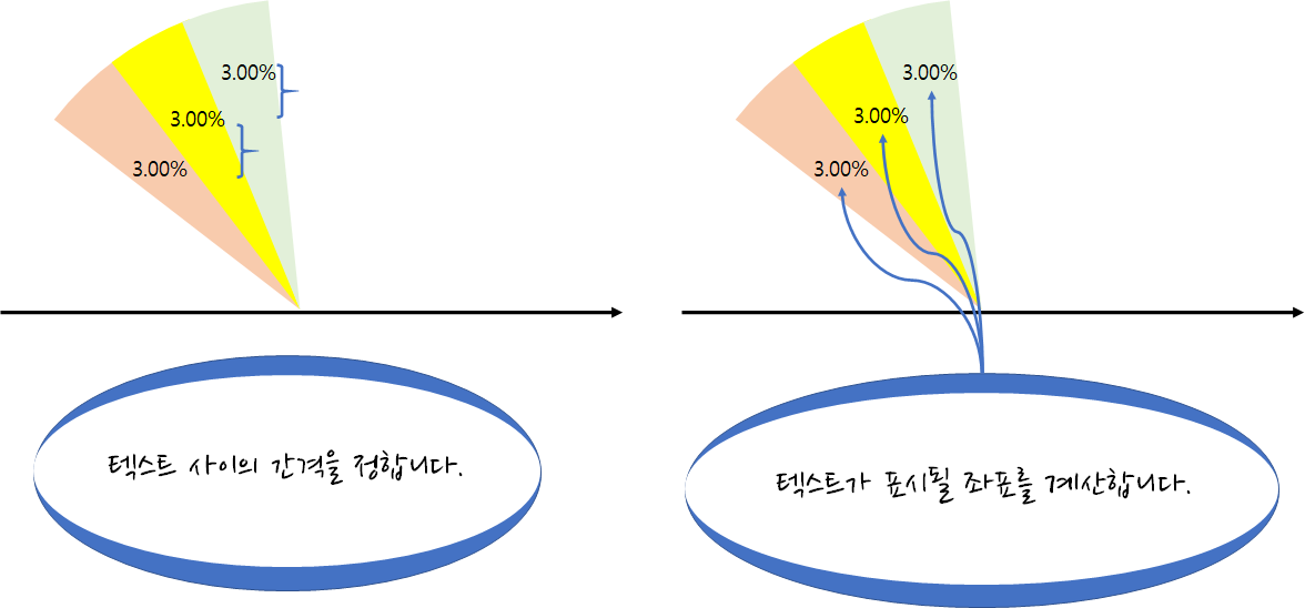 즉, 왼쪽과 같이 겹쳐있는 텍스트를 계단 형태로 벌려서 겹치지 않게 만들려고 합니다.