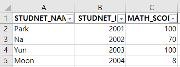 'STUDNET_NAME':['Park', 'Na', 'Yun', 'Moon'],