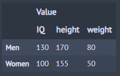 multicol = pd.MultiIndex.from_tuples([('Value', 'weight'),