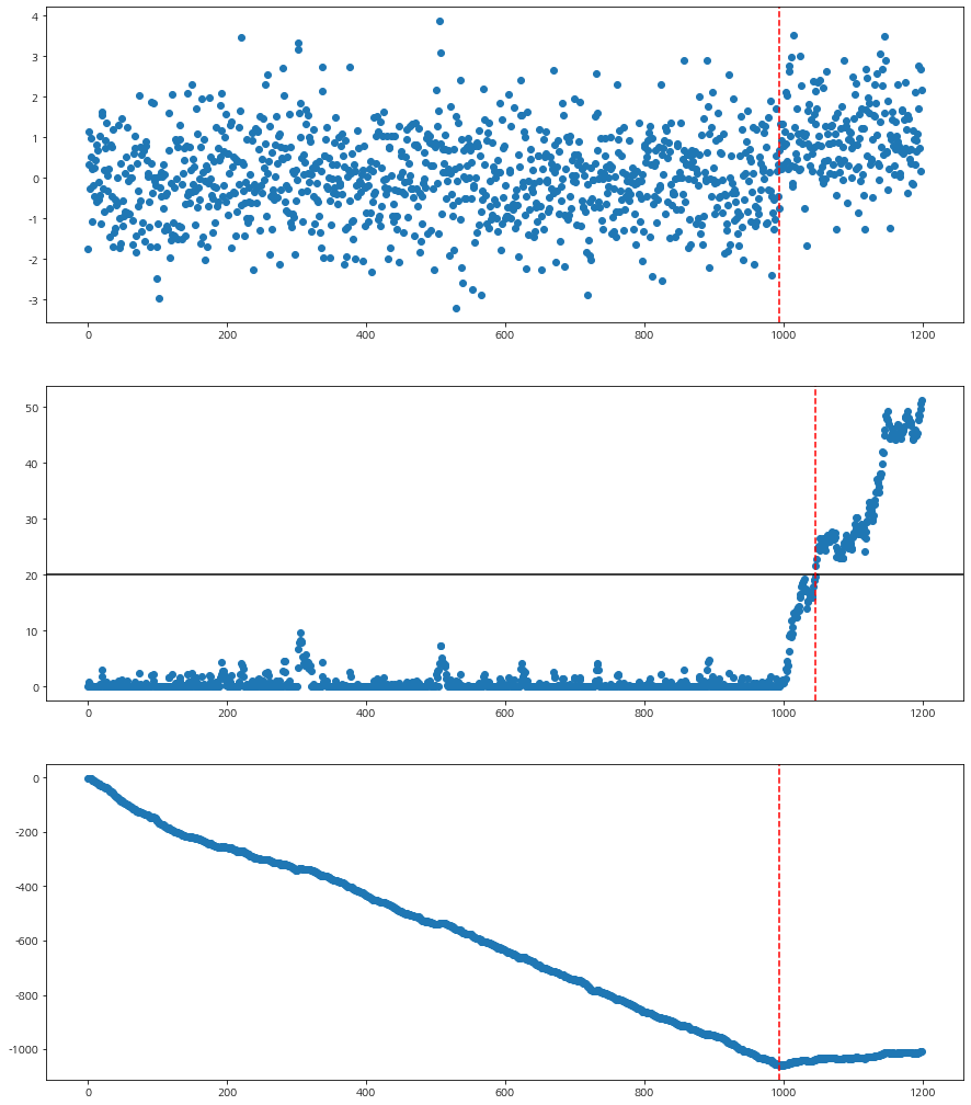 시계열이 정규 분포를 따르되 평균이 한쪽 방향으로 달라지는 상황이라면 One-sided CUSUM 알고리즘은 꽤나 좋아 보인다.