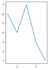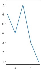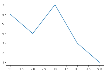 ax.plot([1,2,3,4,5], [6,4,7,3,1])