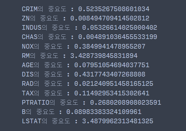 print(f'{feature_names[i]}의 중요도 :', feature_imp)
