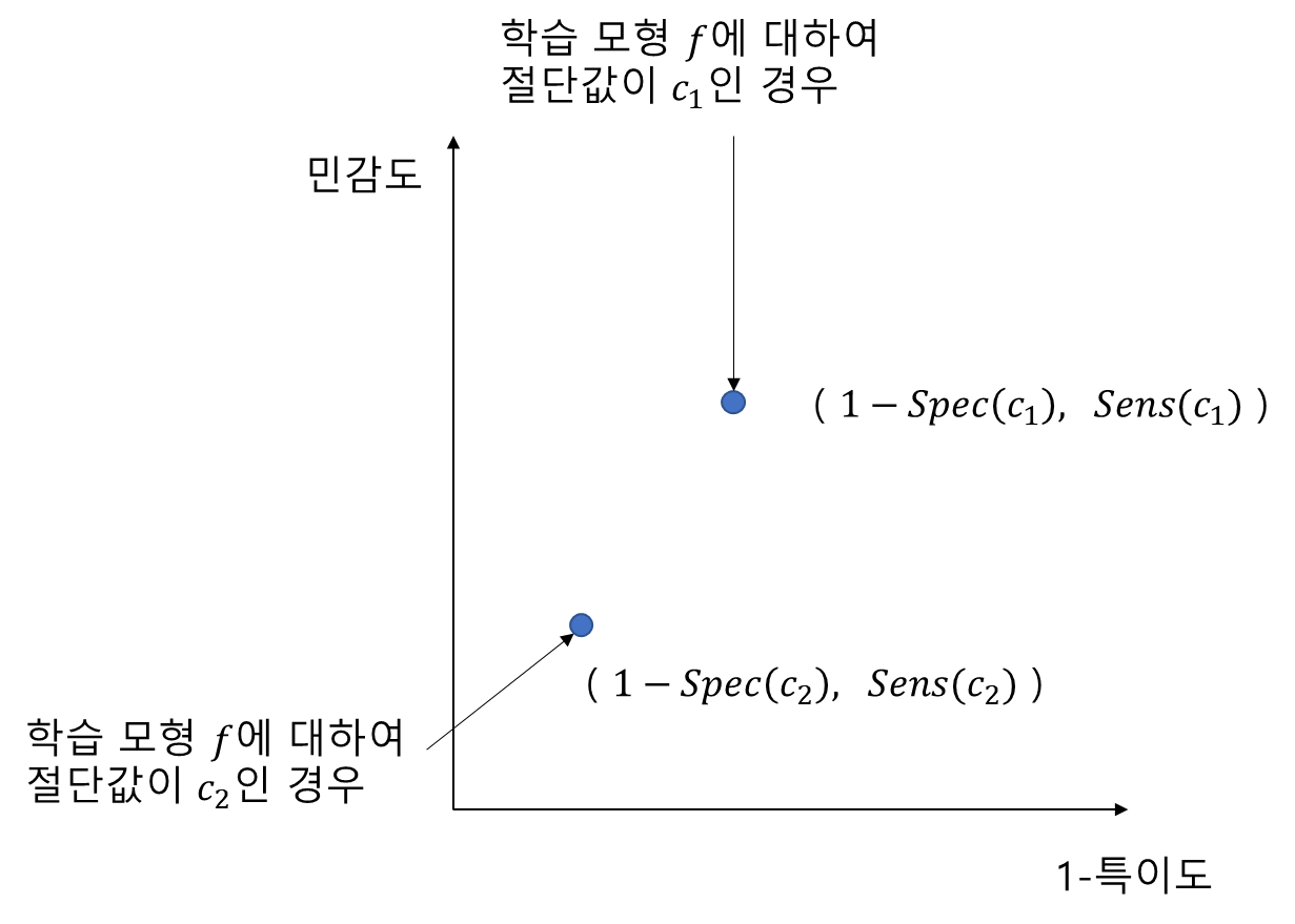 이때 민감도 $Senc(c)$와 특이도 $Spec(c)$는 다음과 같다.