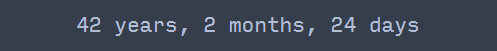 print(f'{res.years} years, {res.months} months, {res.days} days')