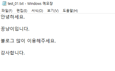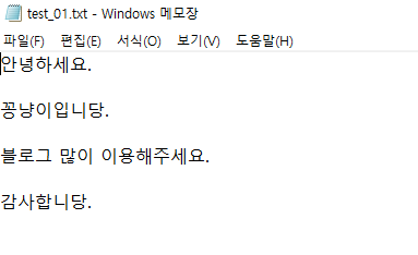 먼저 아래 그림과 같은 텍스트 파일(test_01.txt)을 만들어 주었다.