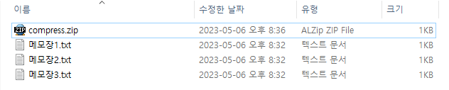 이제 메모장 1~3을 지우고 압축 해제를 해보겠다.