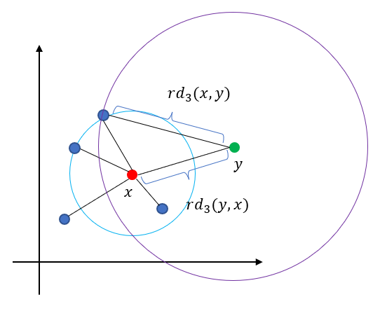 $$rd_k(x, y) = \max \{ d_k(y), d(x, y) \} \tag{3}$$