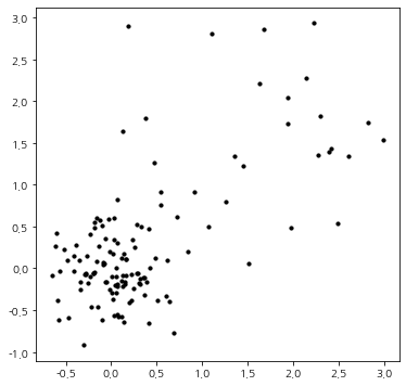 ax.scatter(X[:, 0], X[:, 1], color='k', s=10)