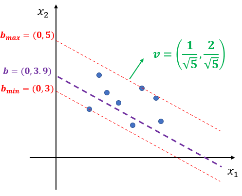 이제 $v$를 법선 벡터로 하는 평면을 찾은 것이며 이 과정이 랜덤 기울기(Random Slope)를 찾은 것이다. 이제 랜덤 절편(Random Intercept) $b$를 찾아야 한다.