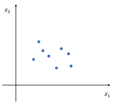 여기서는 임의 방향 분리 방법을 알아보고자 한다. 먼저 $p$차원 데이터 $x_1, x_2, \ldots, x_n, x_i\in \mathbb{R}^p$이 있다고 해보자. 아래 그림은 $p=2$, $n=8$인 상황이다.