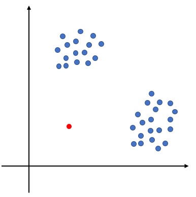 여기서 말하는 Isolation Forest의 단점은 Isolation Forest가 이상치를 잘 구별 못하는 데이터 구조가 있음을 말한다. 다음의 데이터 분포를 살펴보자.
