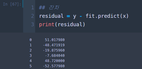 sklearn에서는 잔차를 따로 제공하지 않아서 직접 계산을 해주어야 합니다.