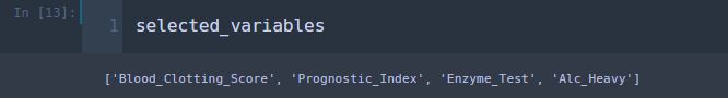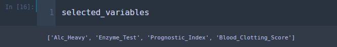 위 코드를 실행하고 최종적으로 선택된 변수들이 어떤 것이 있는지 살펴보겠습니다.
