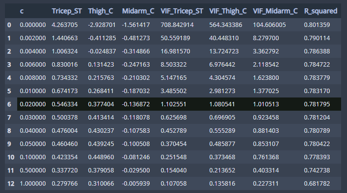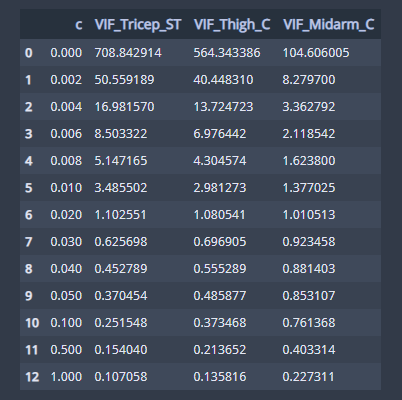 res[['c', 'VIF_Tricep_ST', 'VIF_Thigh_C', 'VIF_Midarm_C']]