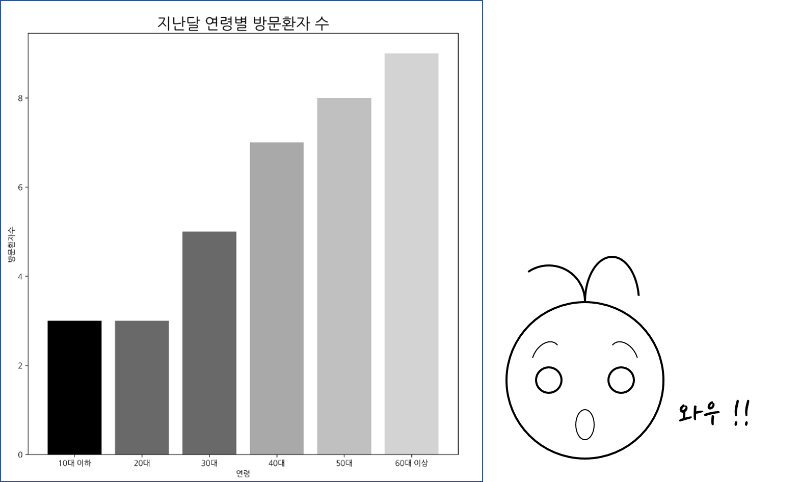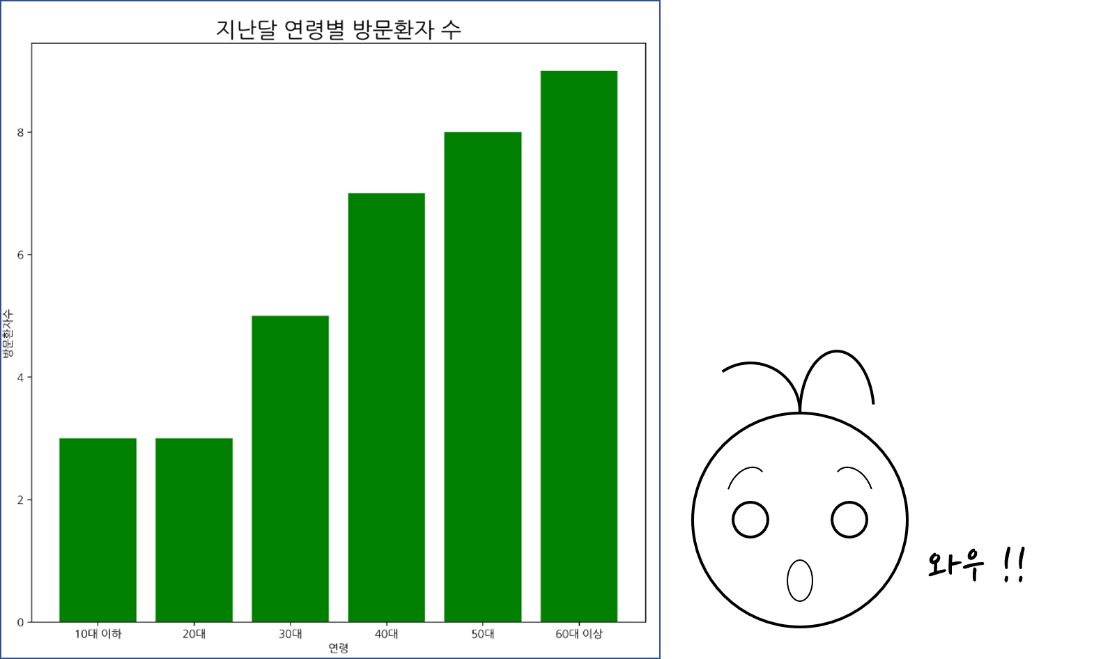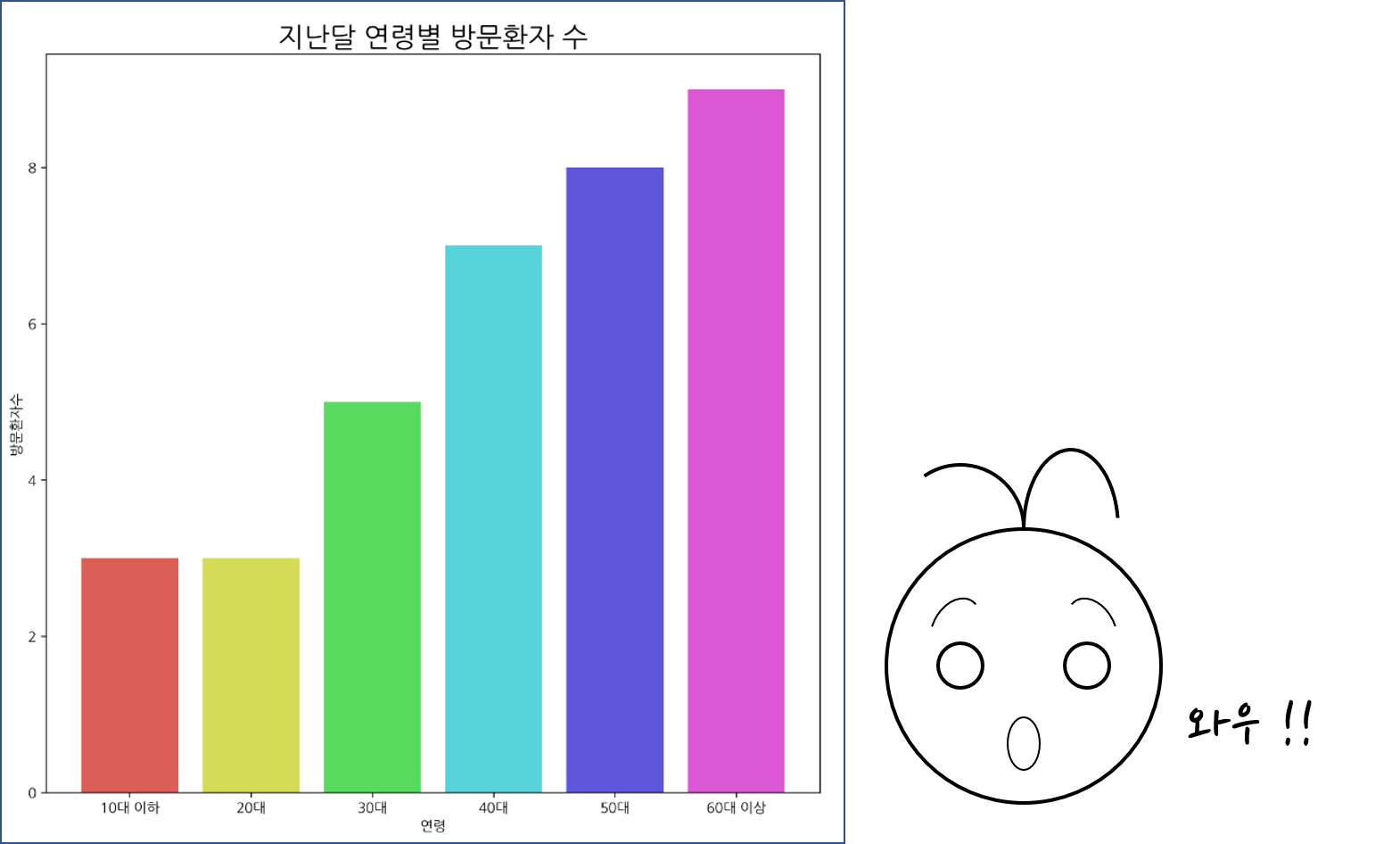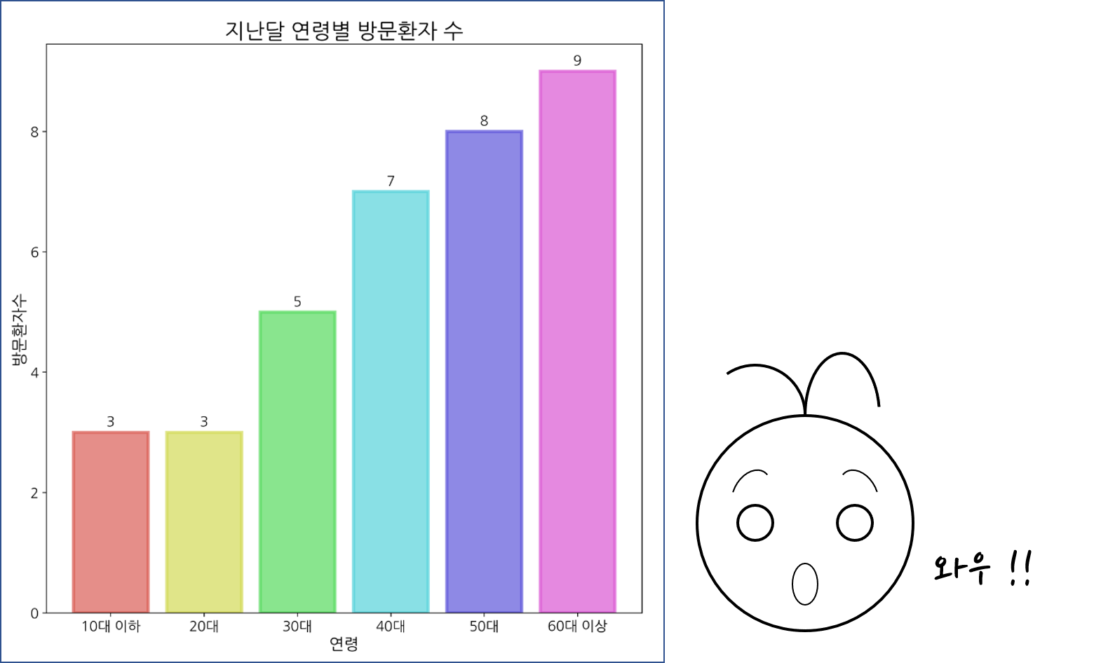 num_patient = [3,3,5,7,8,9] ## 방문환자수