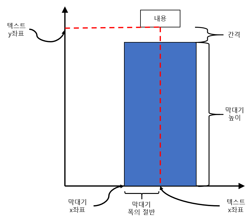 텍스트 x좌표 = 막대기(좌측 하단) x좌표 + 막대기 폭 * (1/2)