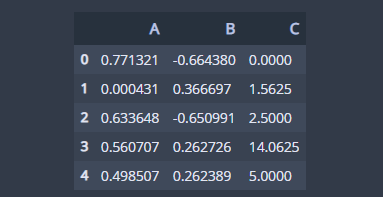 df['C'] = np.linspace(0,5,n)