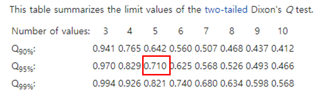 이제 Dixon's Q-Test를 해보자. 시간이 좀 걸린다. 나 같은 경우 20초 걸렸다 ㄷㄷ;;